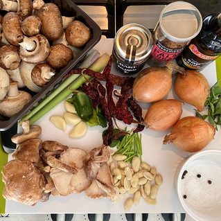 I used a few different types of mushrooms in this dish: closed cup, chestnut and shiitake. Rosa suggests enoki mushrooms (which I couldn't find in our local supermarket). However, I think any mushroom will work, although probably good to have a few varieties to change the texture as well as add to the flavour of the dish. I served mine yesterday with a small portion of fluffy rice, homemade naan bread and a scattering of sliced chilli and fresh Thai basil (what a fantastic aroma Thai basil has!) #nomnom