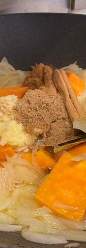 Add the onion and sweet potato and cook for approximately 5-8 minutes.